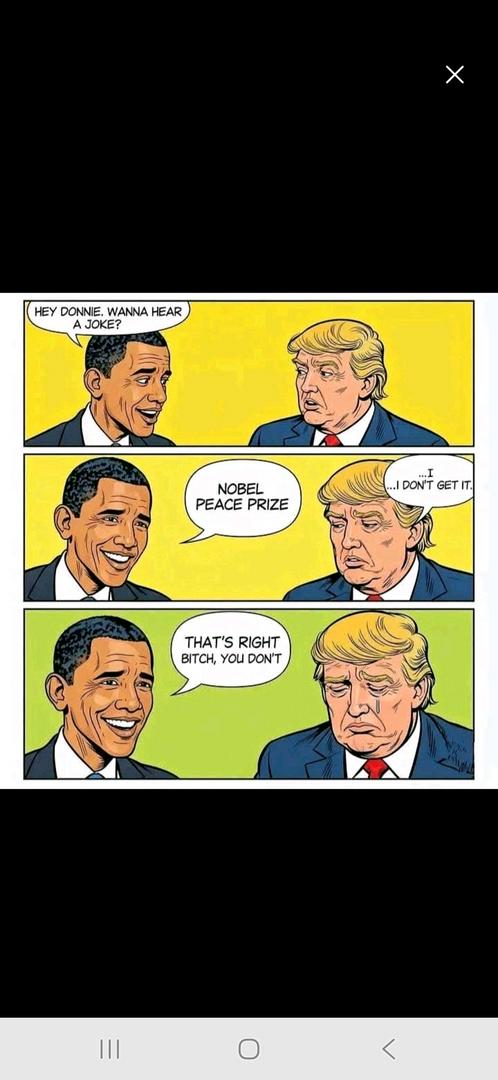 Despite the Nobel Committee in Oslo, Norway not having any direct ties to the Norwegian Government, the leaders if Norway have said they are preparing for retaliation from Trump because of him not being awarded the Peace Prize. Let's let this sink in for a moment - a man with a reputation for petty retaliation is effectively demanding an award for those who make peace, and the government of the country the peace committee is in is bracing for that retaliation. Is there any wonder why he didn't win? He is a bully, with a known reputation as a bully who attacks anything even remotely associated with a group he feels slighted by. He is not deserving of a peace prize, he is not qualified to lead the nation. He is a bully, a thief that steals from charities, a con man, a sexual predator, and a convicted felon. And yet ⅓ of the nation decided to elect him and buys his $59.99 bibles, and his $225 sneakers.