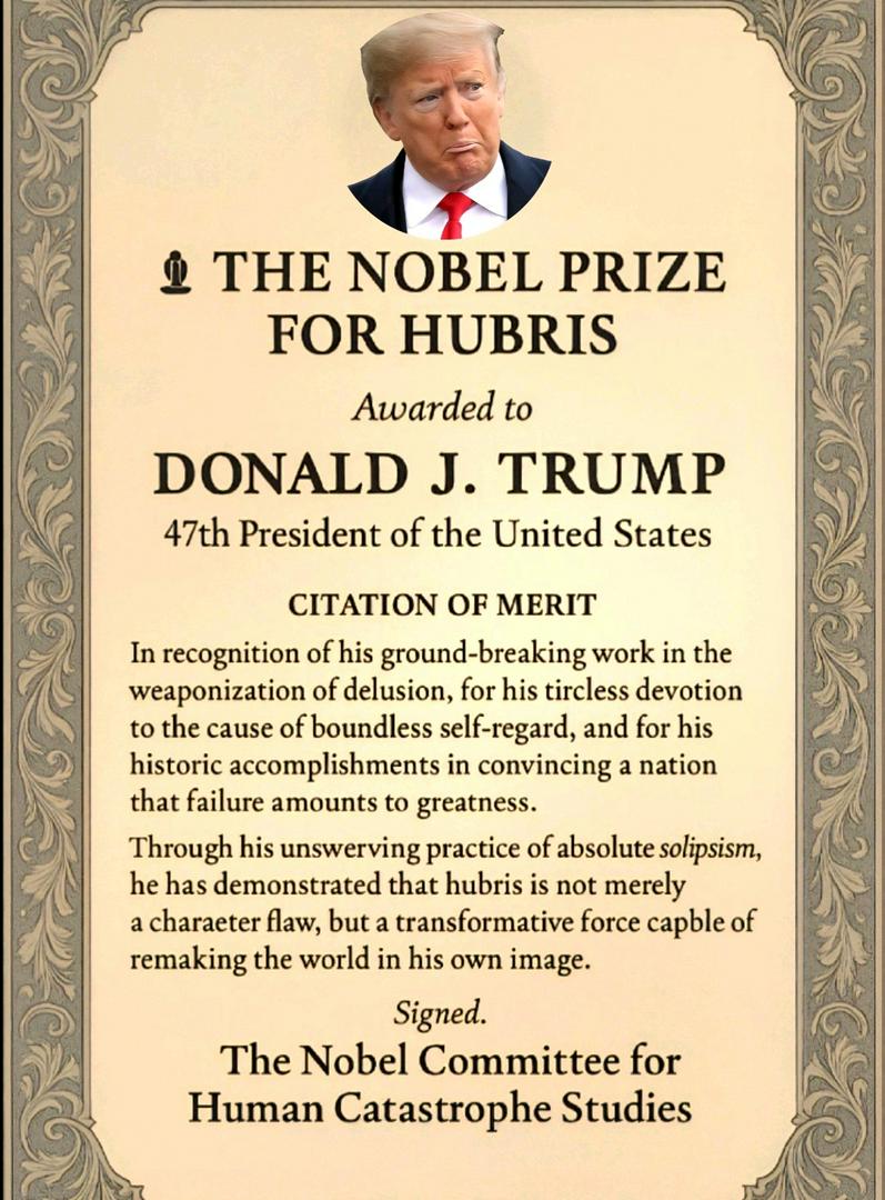 And the Nobel Piece of 💩 prize goes to Donald J. Trump