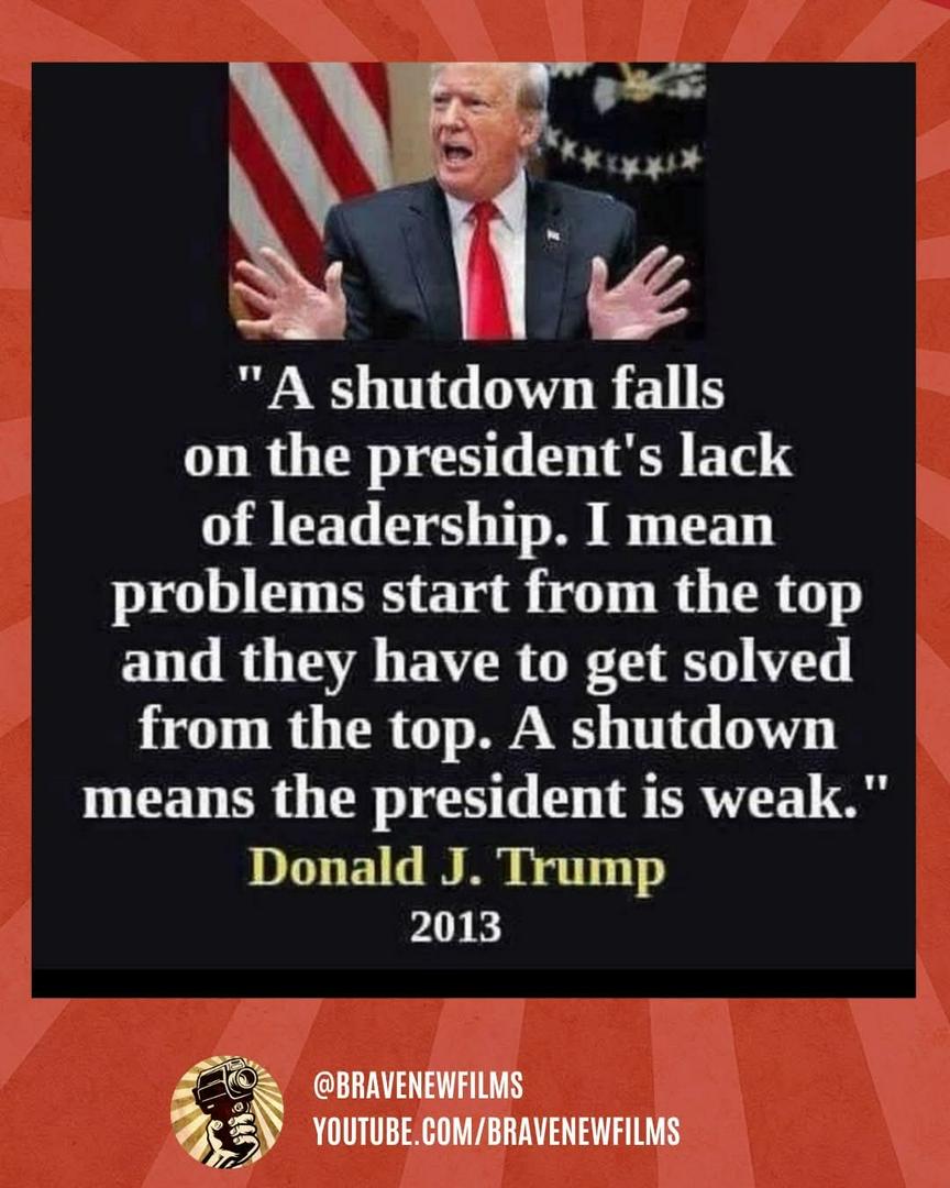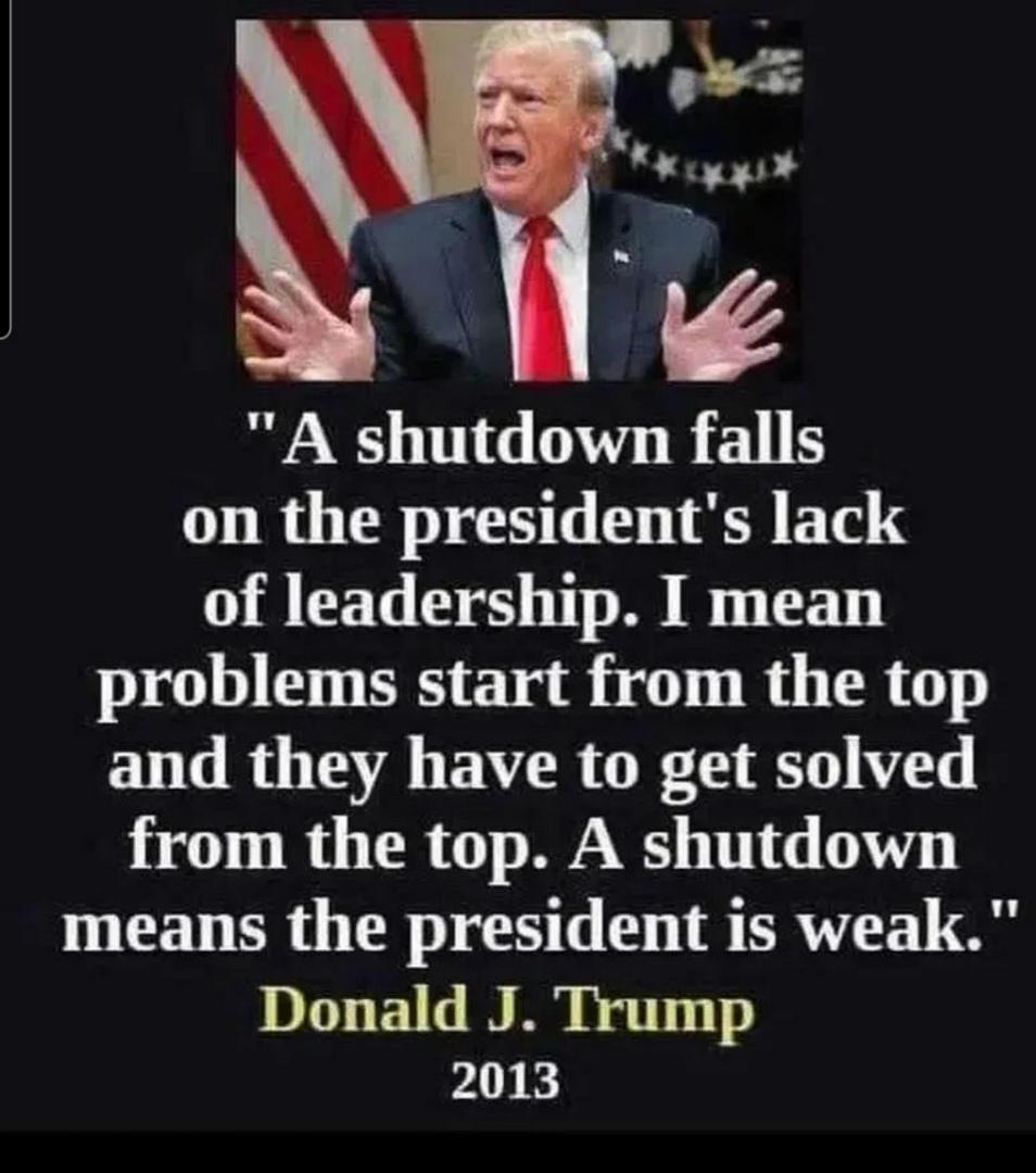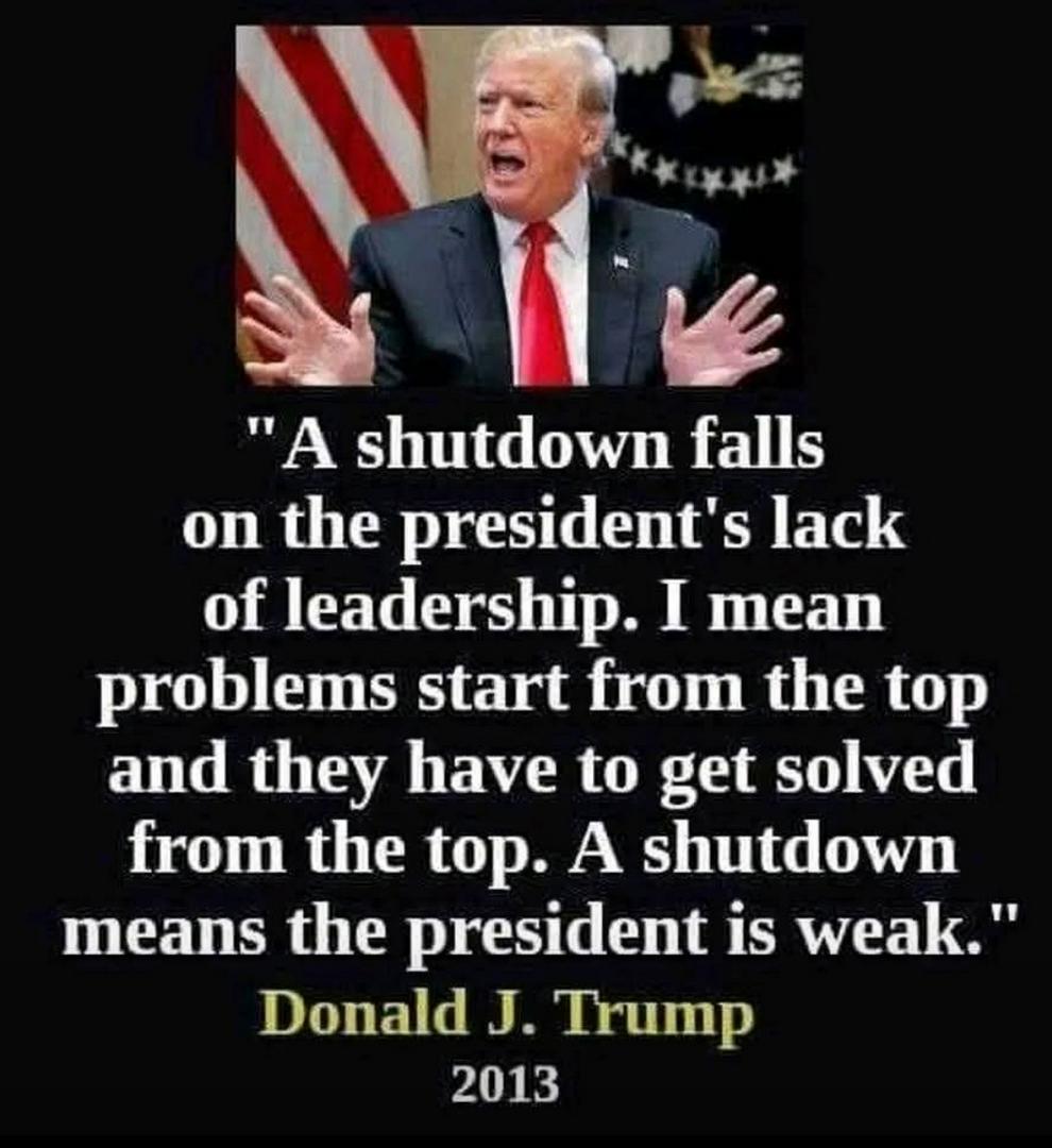 Trump said hisself that if the Government shut down it’s the presidents fault.
