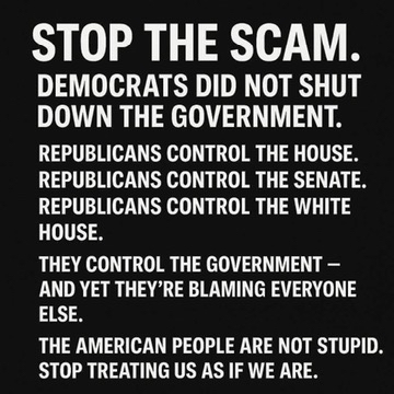 Thank you, Speaker Johnson, for you and some of our Congress members to take time over this past weekend to explain to viewers what or who is responsible for causing this wasteful, ridiculous government shutdown!! Of course, the stingy, thinking-only-of-themselves” Democrats who can care less for the American people and our needs and for the needs of our government that must continue to work & meet goals to make America stronger & greater!!