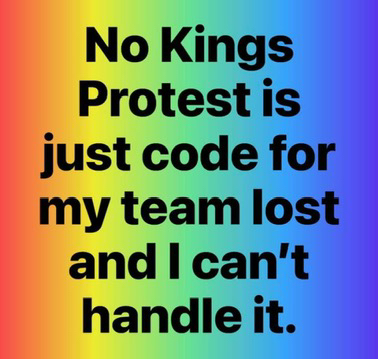 Speaking of "No Kings" and "saving democracy", democracy is what happened last November, when a clear majority of the American people elected Donald Trump President. Democrats have been whining, complaining, protesting, demonstrating, and rioting about it ever since. Apparently they don't really like democracy all that much.