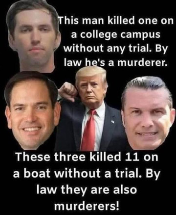 They suspect there are drugs on the boats. They have no proof there are drugs on the boats. What happens when it is proven that one of the boats they blow up didn't have drugs and they murdered innocent people. Who is going to be held accountable? Trump is going to claim Presidential immunity. There are reasons we don't let our police shoot first and ask questions later. These boats are not even in US waters.