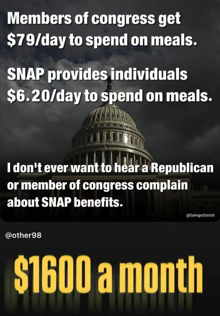 As an independent latino. I feel it is the democrats that are holding up SNAP benefits. The vast majority of Republicans have voted for, only one Republican voted against. They only need 5-6 votes from democrats to pass. Only one democrat voted for. How is this shutdown Republicans fault? You need 60 votes. 55 republicans for to 45 democrats no. So basic math and logic don’t matter anymore?
