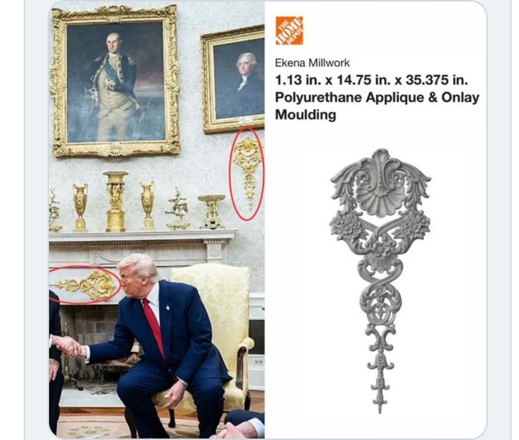 Sick. The oval office never was that. It was never about bling. It was about taking care of the people of the United States of America and doing the job he was hired for. The oval office does not belong to him. It is the place he is supposed to go to work.