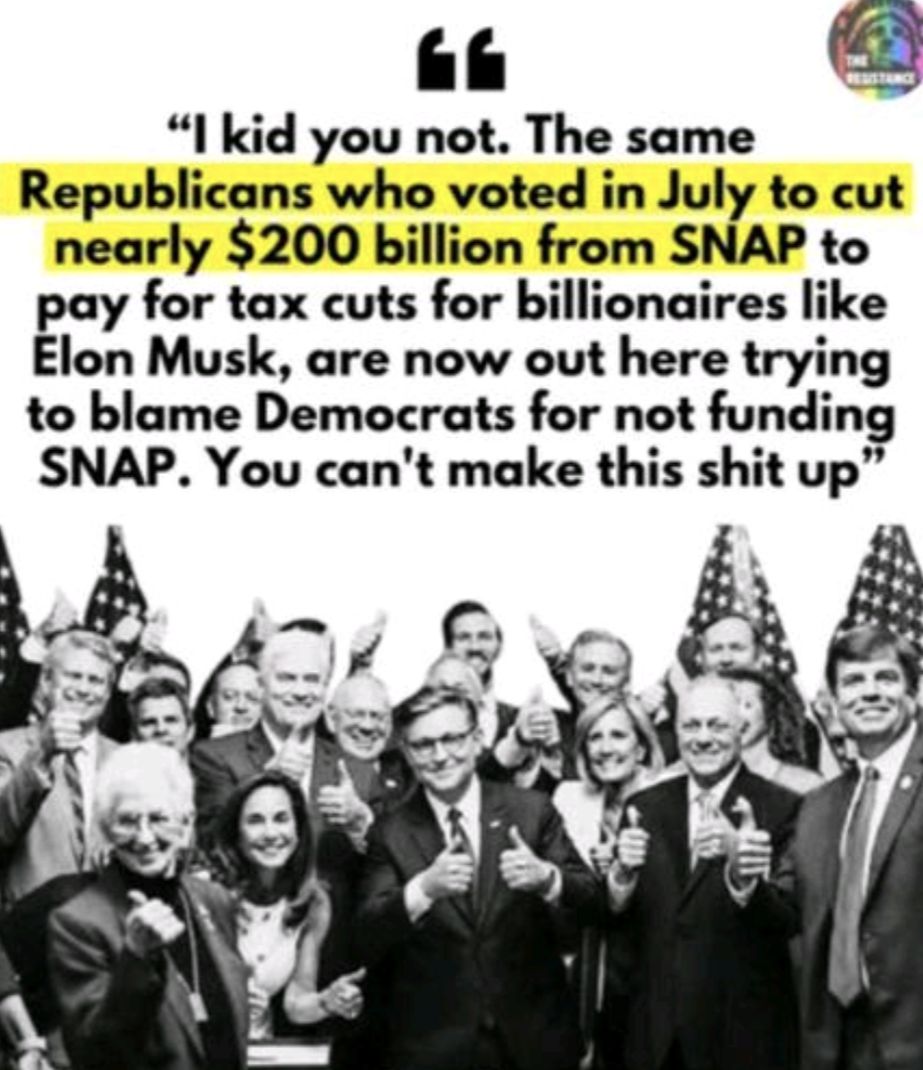 Republicans control the house, the senate, the presidency, and the judiciary. Pretending a republican shut down is the democrats' fault . The GOP wants to throw 15 million people off of healthcare to give more money to billionaires while telling you that hard working illegals immigrants are getting Medicaid and Medicare. Turns out the claim about 'free health care for illegals' is more fiction than fact! Policy analysts have called it completely fabricated undocumented immigrants aren’t eligible for federal health benefits at all. 😮🩺 Yet, repeating this myth still shapes public opinion and stirs heated political debates year after year. So we have $40B for Argentina, $1B for Trump’s Qatar jet, $250M for Trump’s ballroom, $150M for Trump’s golf, $520M for National Guard deployments & $172M for Kristi Noem’s jets - but ZERO to lower our healthcare bills. Got it!… "Accuse the other side of that which you are guilty."- Joseph Goebbels Nazi Propaganda Minister