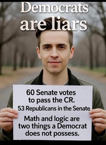 do some simple math! there's 55 yes votes for the CR that allows the government to open, All that is needed is five votes in favor. apparently the cult of the demoncrats plan won't allow any of them to vote for the citizens!