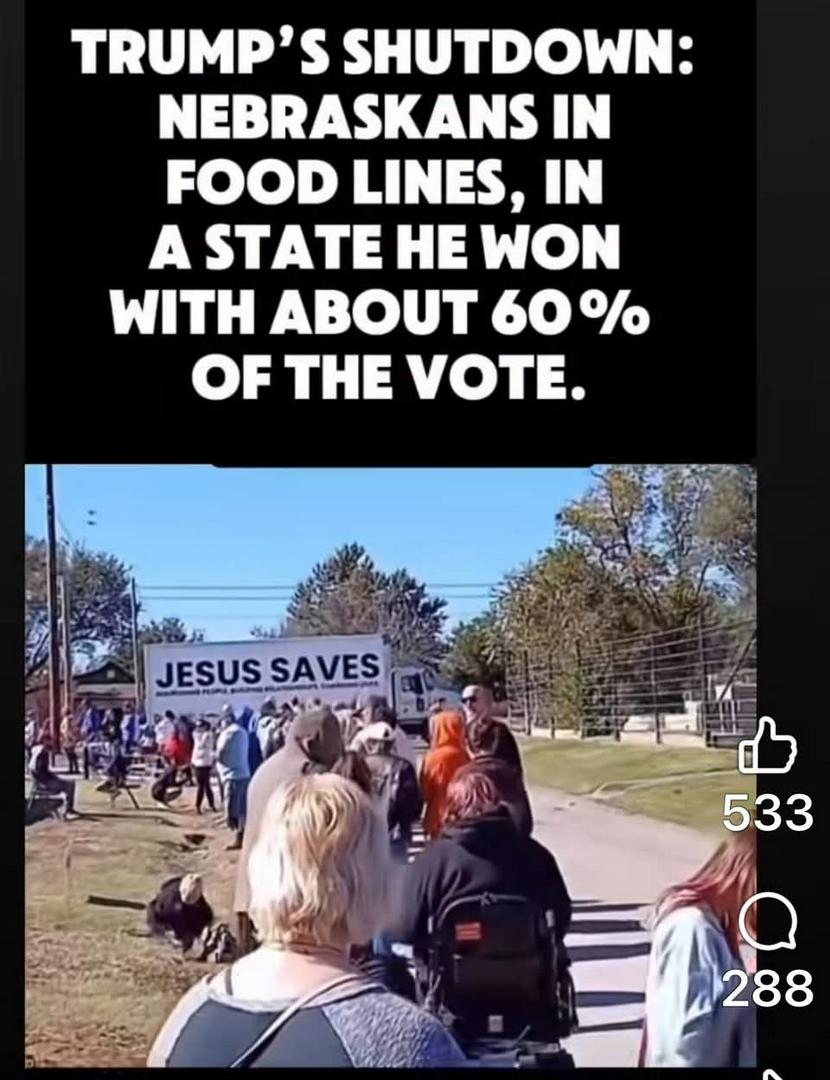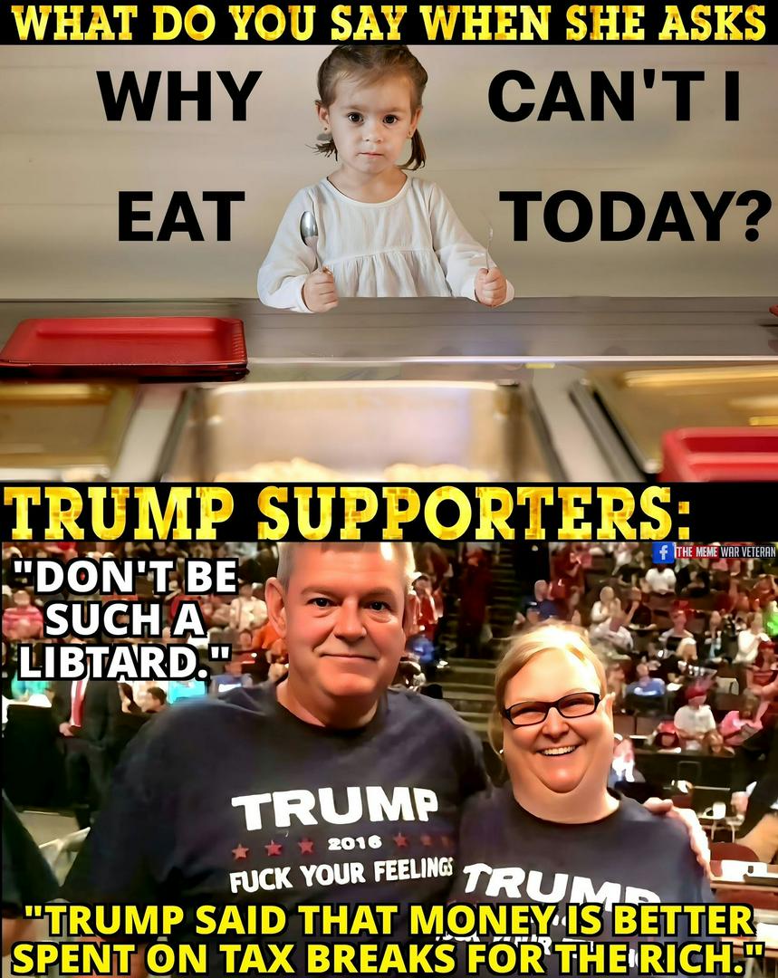 PPL ppl ppl calm down ànd look at what 45 plan is. He is working on removing PPL slowly from this earth. NO FOOD EQUAL HUNGER EQUAL STARVATION AFTER STARVING FOR SEVERAL DAYS .........WHAT WILL HAPPEN ??? 45 IS HEARTLESS. KARMA COMING. ALMIGHTY GOD SEE EVERYTHING !