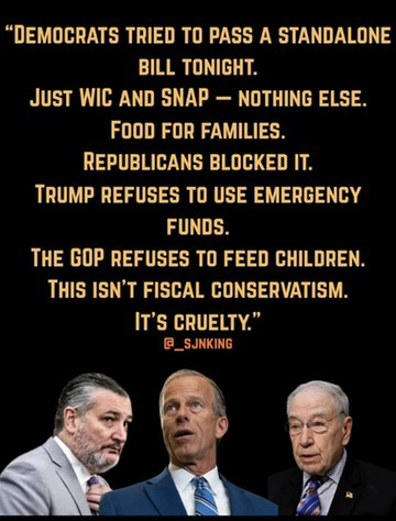 they just want democrats to take some of the blame for their big ugly bill that will make blood pressure medications and asthma medications unaffordable for the common man. it's not on democrats the judge said release the funds and Republicans refuse so who's really to blame