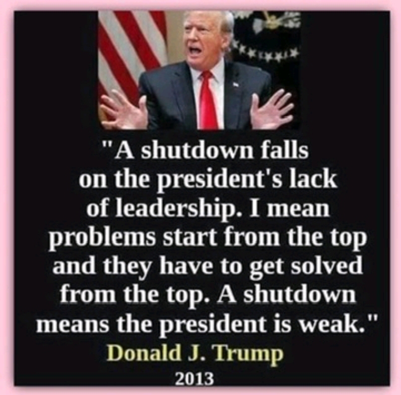 Remember what he said in 2019, "if the government shutdowns is the RESPONSIBILITY OF THE CURRENT PRESIDENT!!!!!!!