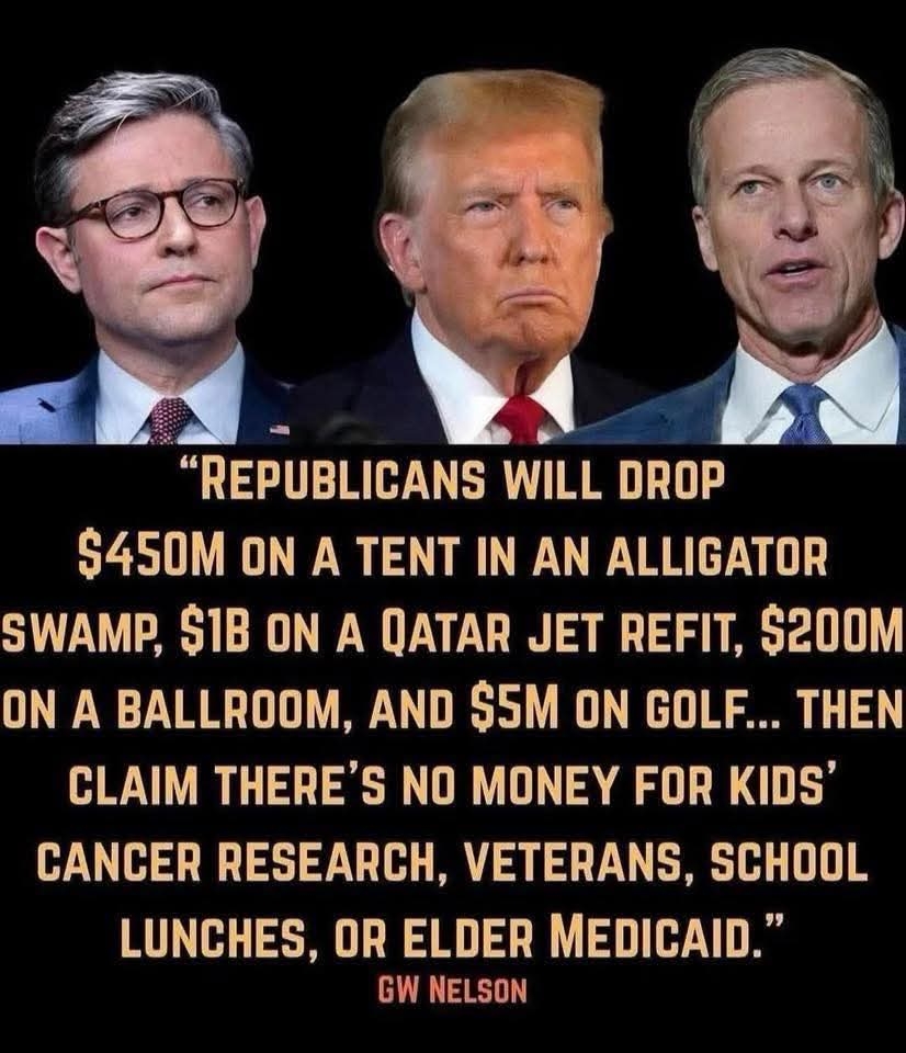 He is so full of crap. The Republicans are voting for the government to take money away from citizens every time they vote in favor of the bill. Where is the money that Doge was supposed to have captured from all the agencies they shut down? And all the misappropriations of funds, they found? Why can't they use that money to fund the bill? Instead of taking money from medicaid, Medicare, snap benefits