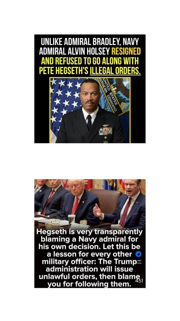 1) Trump ordered Hegseth to do it. BOTH missiles. (2) Hegseth then ordered the Admiral to do it. (3) The Admiral carried out the CRIMINAL MURDER 'ORDERS' that came from the VERY TOP. ..(4) Even if the boat was filled to the HILT with drugs, and likely on it's way here, they *DO NOT* GET THE INSTANT DEATH PENALTY FOR THAT!!!!!!! ...Trump, Hegseth, & the Admiral - at LEAST, should be IMMEDIATELY ARRESTED FOR INTERNATIONAL WAR CRIMES (MURDER)!!!!!!!! 🩸🩸🩸🩸🩸 ....and ROT there, until their trip to Hell.