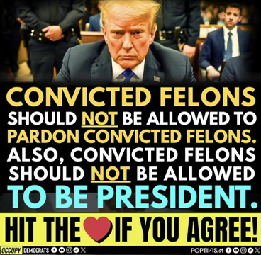 This president is a danger to the united states of America but yet he still can lie and get away with his lies nixion had tapes but has the sense to resign clinton had affair you impeached him now here it is a president trump has 34 felons and he still the president of united states seem like you like to see him continue to let him to destroy the peoples for him to continue stay in power