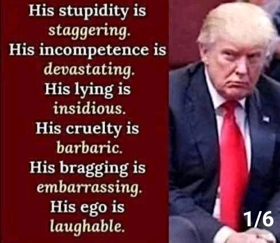 He is a miserable, unhappy, fragile minded child. He has to own everyone and everything, but those are just the symptoms. He is a very disturbed and sick man. What his base considers to be funny and normal are really signs of a very disturbed and ill man just as those very close to him, have stated family members and associates alike. This man desperately needs help and it’s only a matter of time and hopefully a short one that he will be removed.