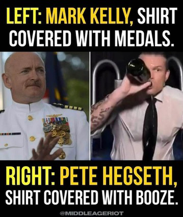 Wrong on every level! Mark Kelly is far more respected than Hegseth