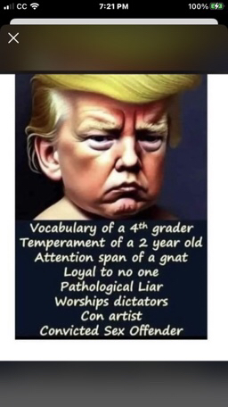 Disgraceful Delusional Donny Drumpf is a narcissistic, fascist child that believes his own lies and his cult followers are total imbeciles, just like him. but he loves his stupid people and he said that smart people don't like him.