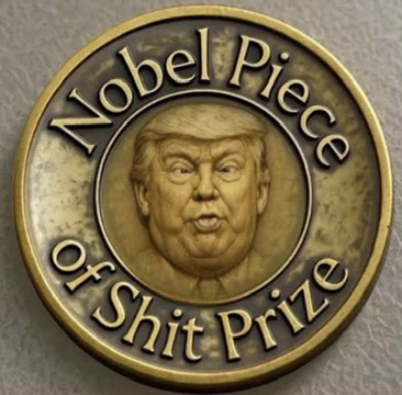 Here’s the Nobel Prize this lying thieving Convicted Felon and Child Predator deserves👍😂