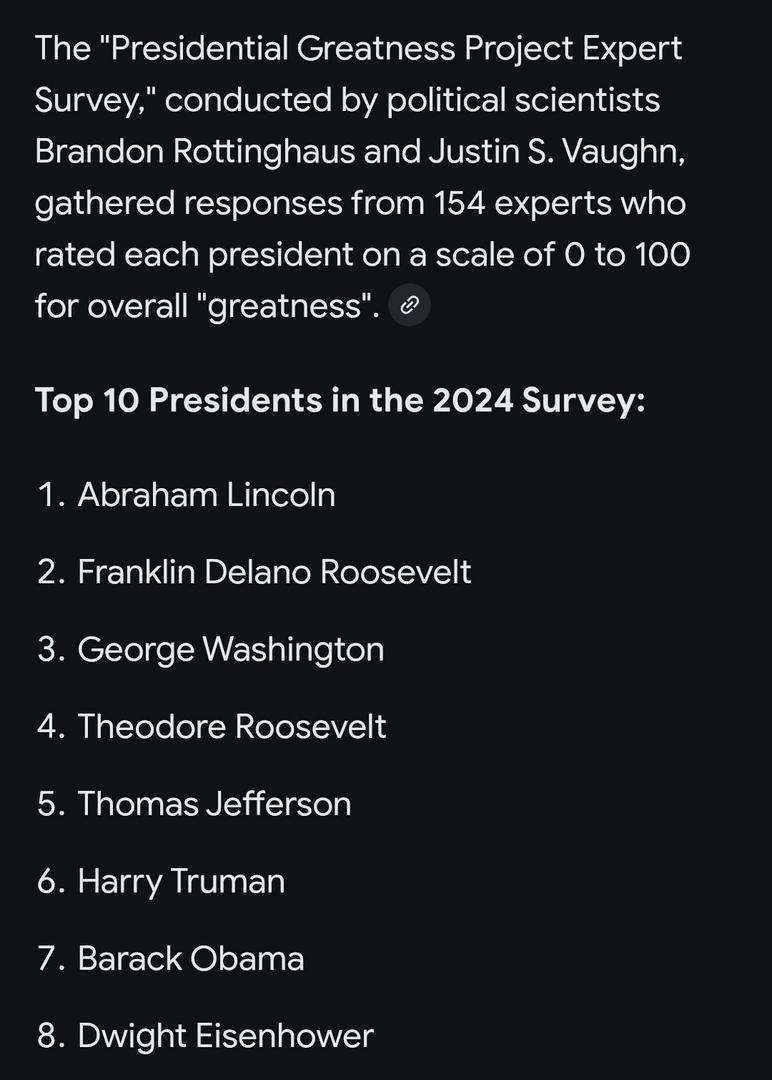 President Obama is tge 7th best President of all time