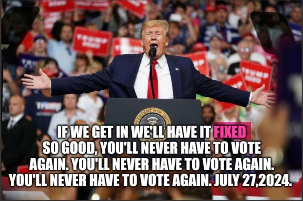 No he’s not joking. He’s very serious about it. He’s been saying it to the Republican Party if they don’t keep the house and senate. He’s already making threats. They are redistricting states to cheat. Talk about trying to steal the election.