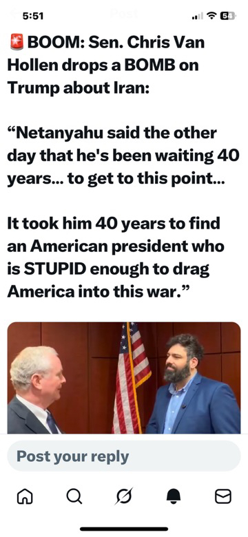 Dictator Trump has gotten the US into a war without permission from congress! Congress has failed 😞 its mission of protecting the people of America 🇺🇸, especially the military! Retaliation by Iran 🇮🇷 is going to happen and the country is not going to be ready for it! His lies about the Iranian government should make him libel for impeachment now! When will he be held accountable for his crimes against humanity and the United States 🇺🇸? ☠️☠️☠️💥🔥🙈🛑🛑