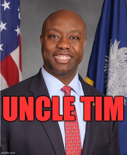 Tim Scott needs to go back in his hole. He is a disgrace to himself and the people. He is dazed and confused and he has an identity crisis. He made himself look like a fool on national television. He is a really good butt kisser as he showed on national television with the infamous I just love you man. He's a disgrace to himself and to the people.