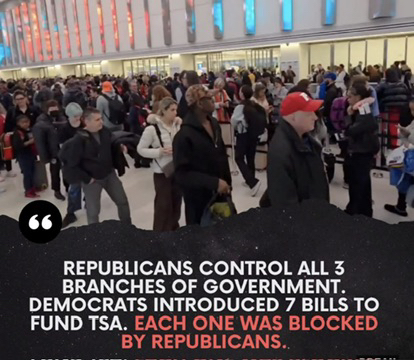 If Trump can make sure his boys, ICE get paid regardless, then he can do the same for TSA! it's all in the one funding bill Dems are fighting. ICE and TSA are under the same umbrella. Dems are fighting for reforms needed for ICE and the murdering of American citizens and inhume treatment of immigrants! Maga can't fool me with their messy lies! Trump just want his private army (gestapo) to be seen and feared. But only some people fear them!