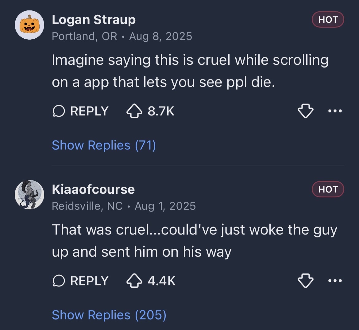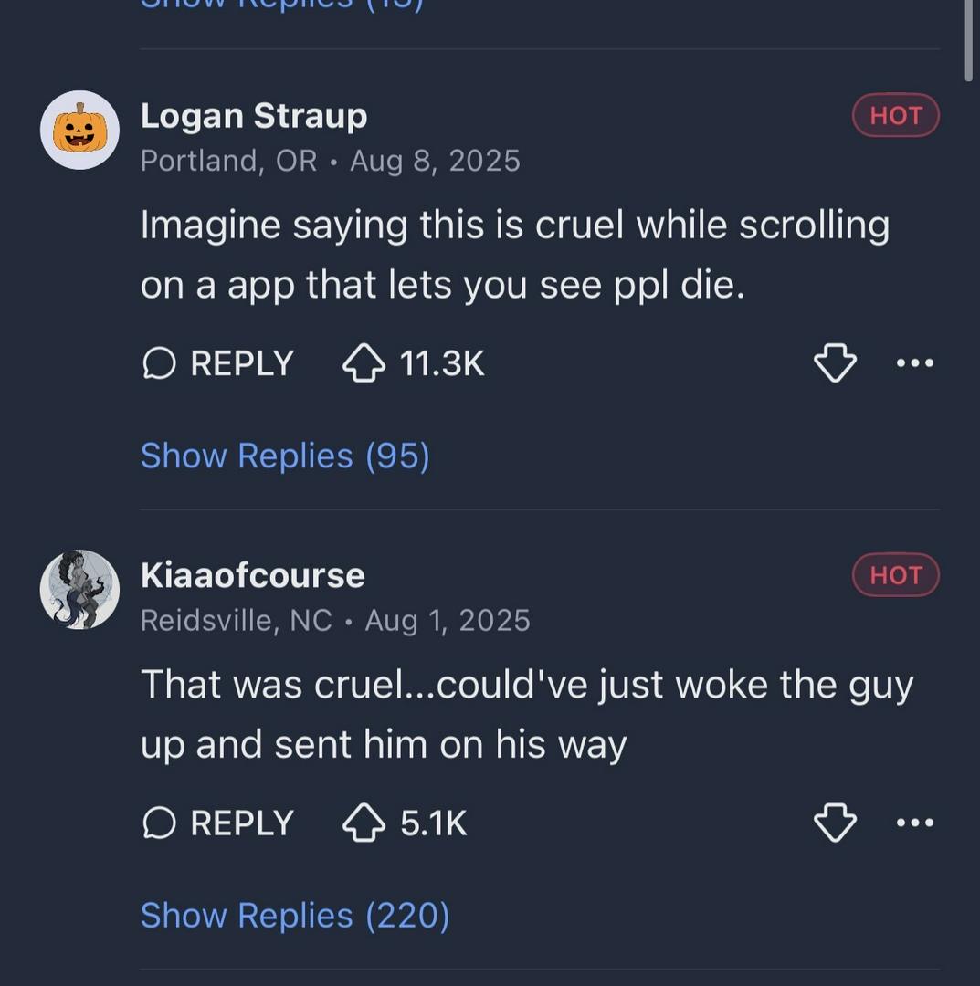 Imagine saying this is cruel while scrolling on a app that lets you see ppl die.