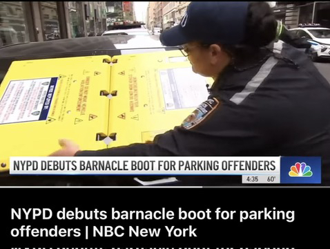 I didn’t know this existed and had to look it up. Wow! It’s being used by the NYPD. The “BARNACLE BOOT” adds 1,000lbs. of pressure with the suction cups and it’s much safer for the officers to use and yakes :30 seconds. It sounds an alarm if you try to remove it.