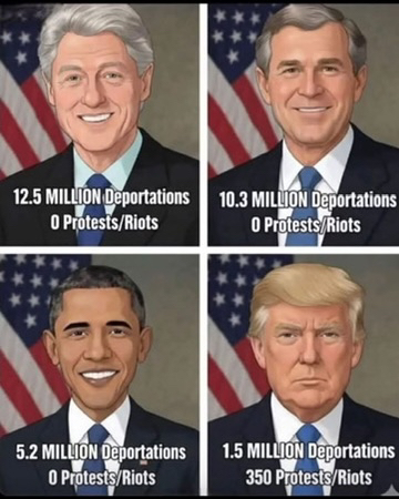 let's look at the facts. out of almost all of the presidents, trump has deported the least. so many Democratic presidents has deported millions and millions of illegals and have had no protests. but as soon as a Republican president starts deporting illegal immigrants, he gets millions of protest. so it is fine as long as the borders are secure when it is a democratic president, not conservative. got it🤨