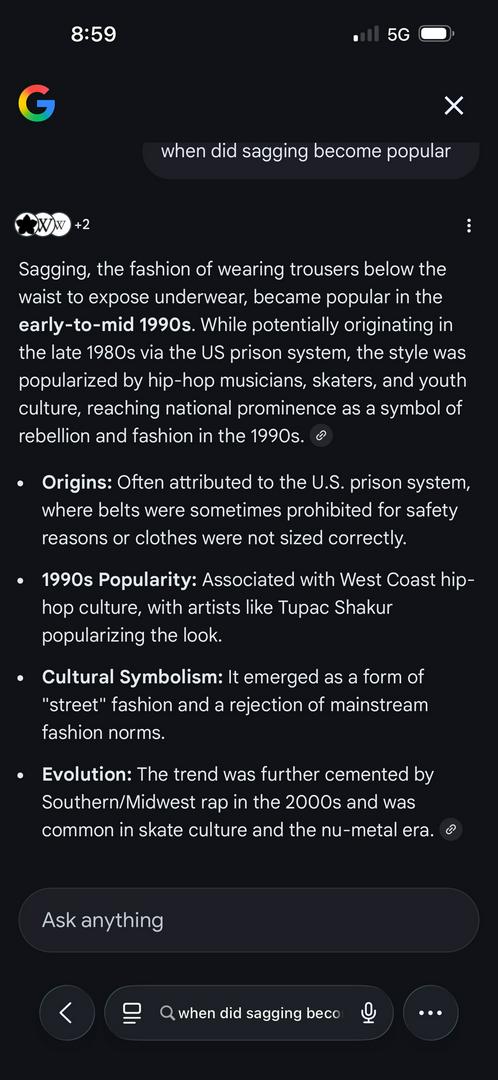 Sagin started in the poor communities where people could not afford new pants.And when their pants became high waters, they sagged them in wore long shirts to pretend like they were the right size