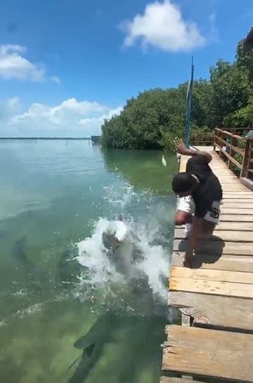 That was great ! What was he thinking? Those fish were waiting to be fed . They weren鈥檛 hanging out there by coincidence.
