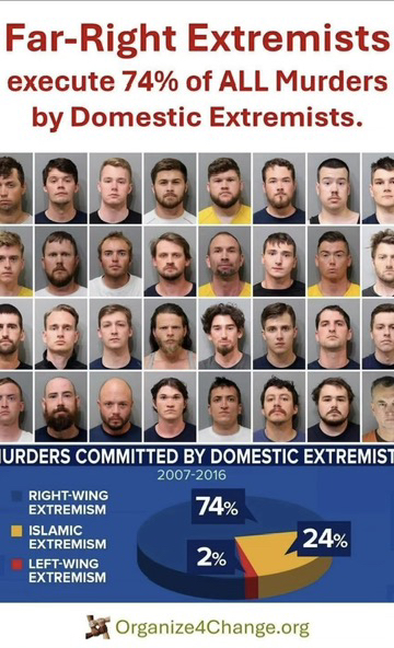 If you look at the TRUTH the majority of political violence comes from the RIGHT! The right are the neo-Nazi, Kkk, proud boys and ugly organizations like Kirk’s!