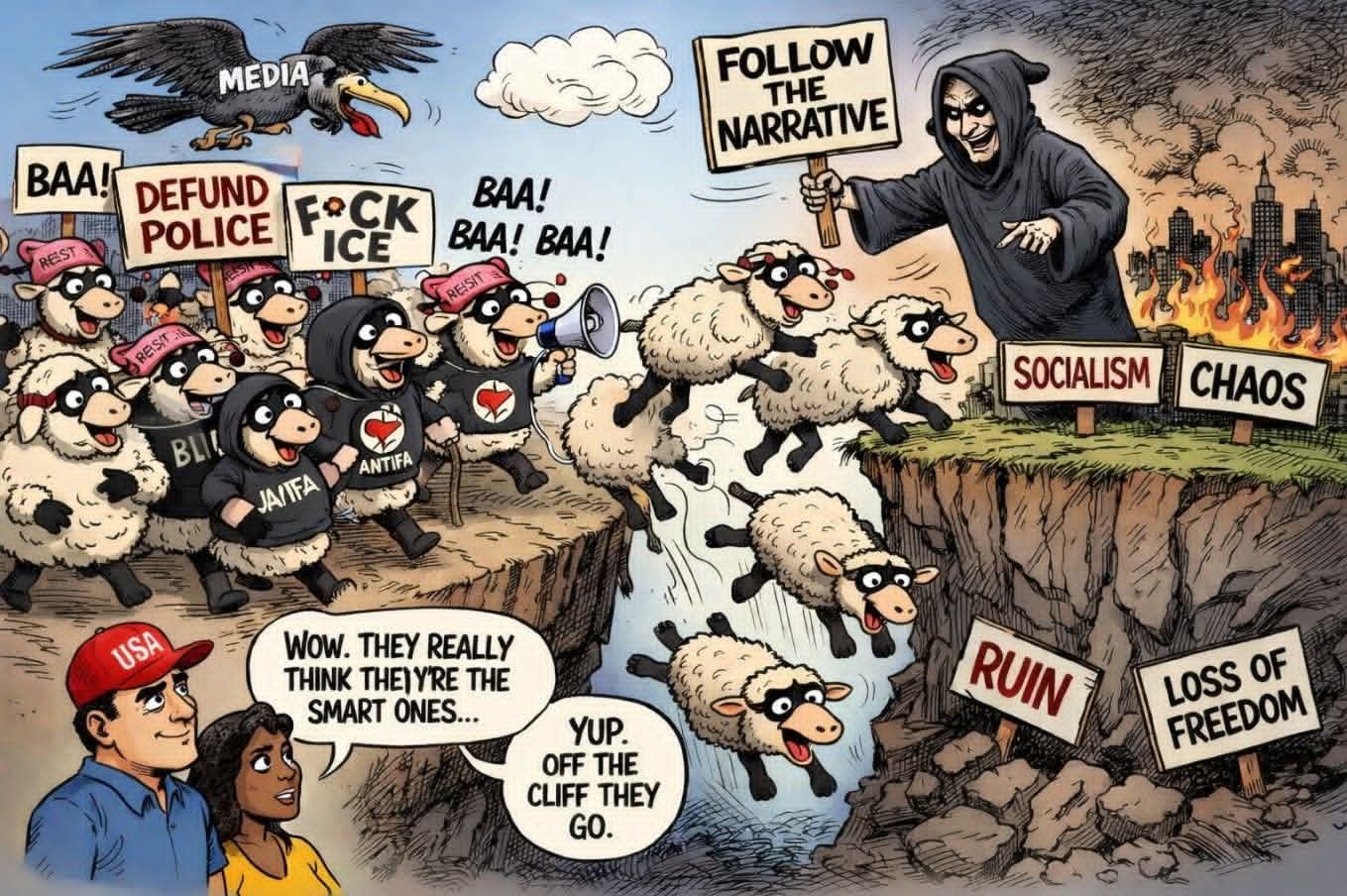 exactly 💯💯💯💯💯, this movie is strictly talking about the maga morons that refuse to see the country is burning down because trump! OUR COUNTRY IS DEEPLY DIVIDED BECAUSE OF HIM! AND THAT'S EXACTLY WHAT HE WANTS.