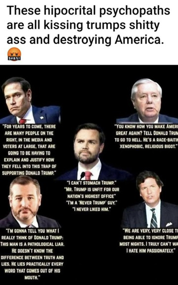 trump is so sickening to listen to a con man a bregger a bum a evil man that needs to be in jail for felons rapist traitor treason fraud abuse of power there isn't anything much more shit there is so many crimes this man has done ONE DAY HE WILL BE BEHIND BARS OR