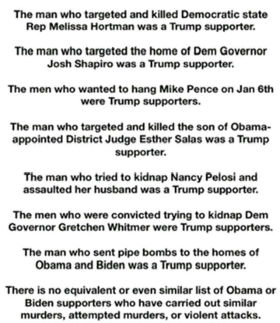 Add Charlie Kirk and his Trump supporting Murder to the list.