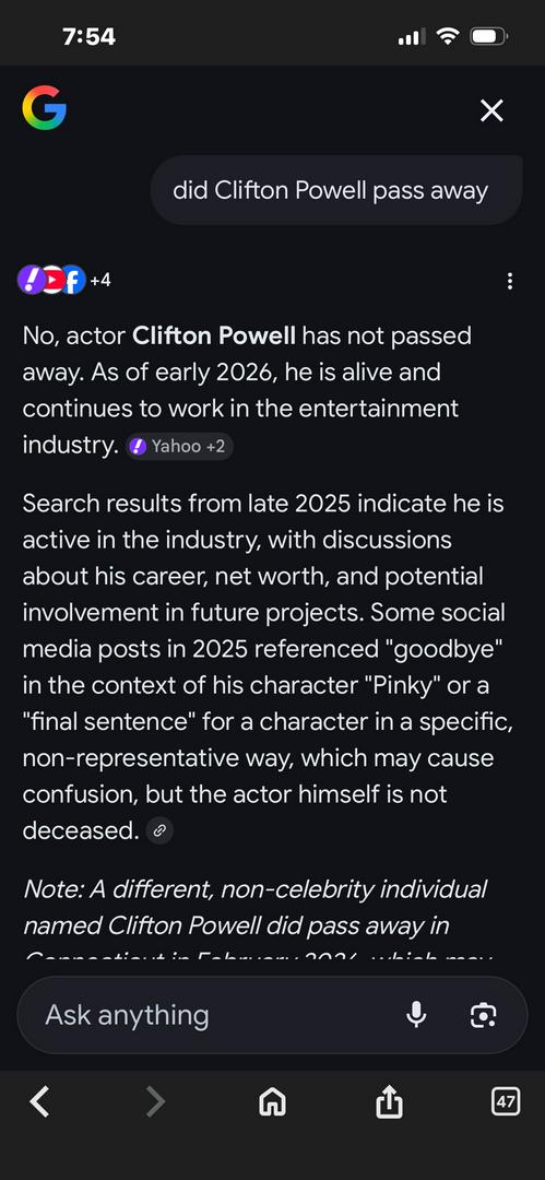 Clifton Powell is still alive. Lies