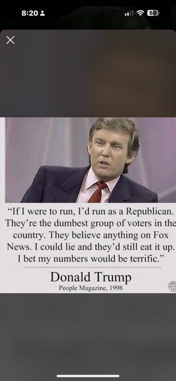 American Hitler. Take a look. Firing people for free speech. Taking away the news channels. Talking about the Democrats so the Republicans will hurt them. He’s dividing us even more and more and more. He’s Hitler welcome to the American Hitler.