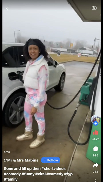 Look at the fuel nozzle... She isn't putting any type of fuel in that vehicle... 🤔 One has to lift the handle to pump... 😆 fake... 👍