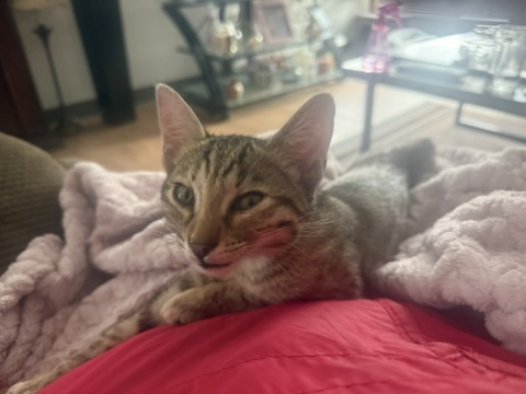 I am Pleased to see this BEAUTY is Sheltered from Harm. Especially in the Physical condition that it is in. Seems VERY CONTENT and LOVED. Communicates just like a Regular Domesticated Cat. PRECIOUS RESCUE 🥰🙏💕