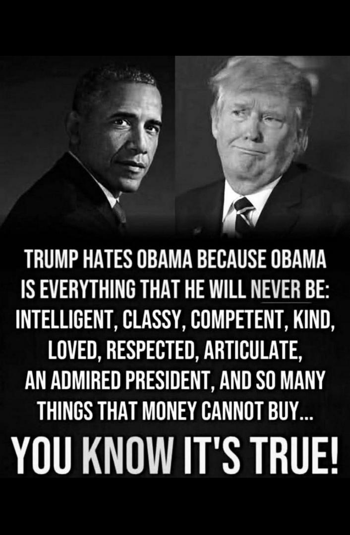 Obama was a president who was well respect and loved thats why Trump is so jealous of him.