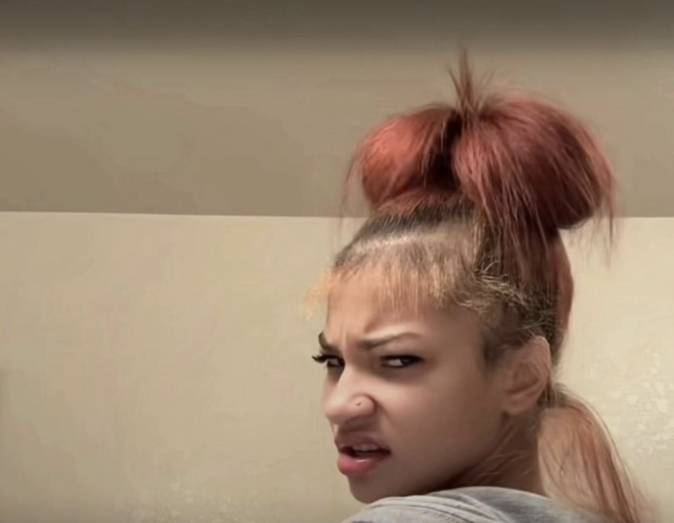 she was looking like she was gon swing when she pulled his shirt