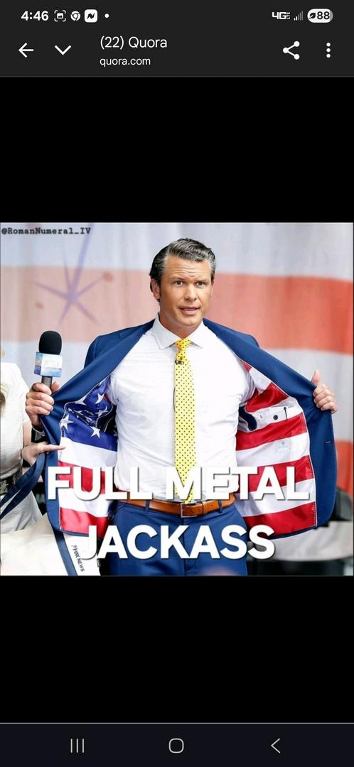 What Hegseth really meant to say is ... NEITHER HE NOR TRUMP ARE FIT TO WALK THE HALLS OF THE PENTAGON OR THE WHITE HOUSE!🤣🤣🤣🤣
