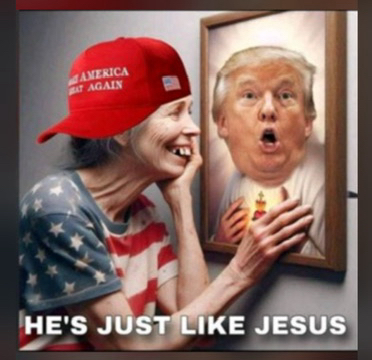 MAGA is suffering from N3D-BA: Narcissistic Delusional Dementia Disorder By Association. This woman mind has been spiritually compromised! St. John 14:6 would profoundly disagree with her heretical words! MAGA needs JESUS, not Trump!