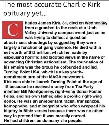 Charlie Kirk was a nobody, two bit racist, not someone one to be acknowledged