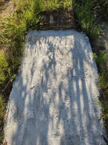 The man was loved andburyed with a headstone and concrete slabs and it appears water flooded it out removing the soil exposing the open grave that floated and sank so used concrete to cover it instead of moving it. 🤔
