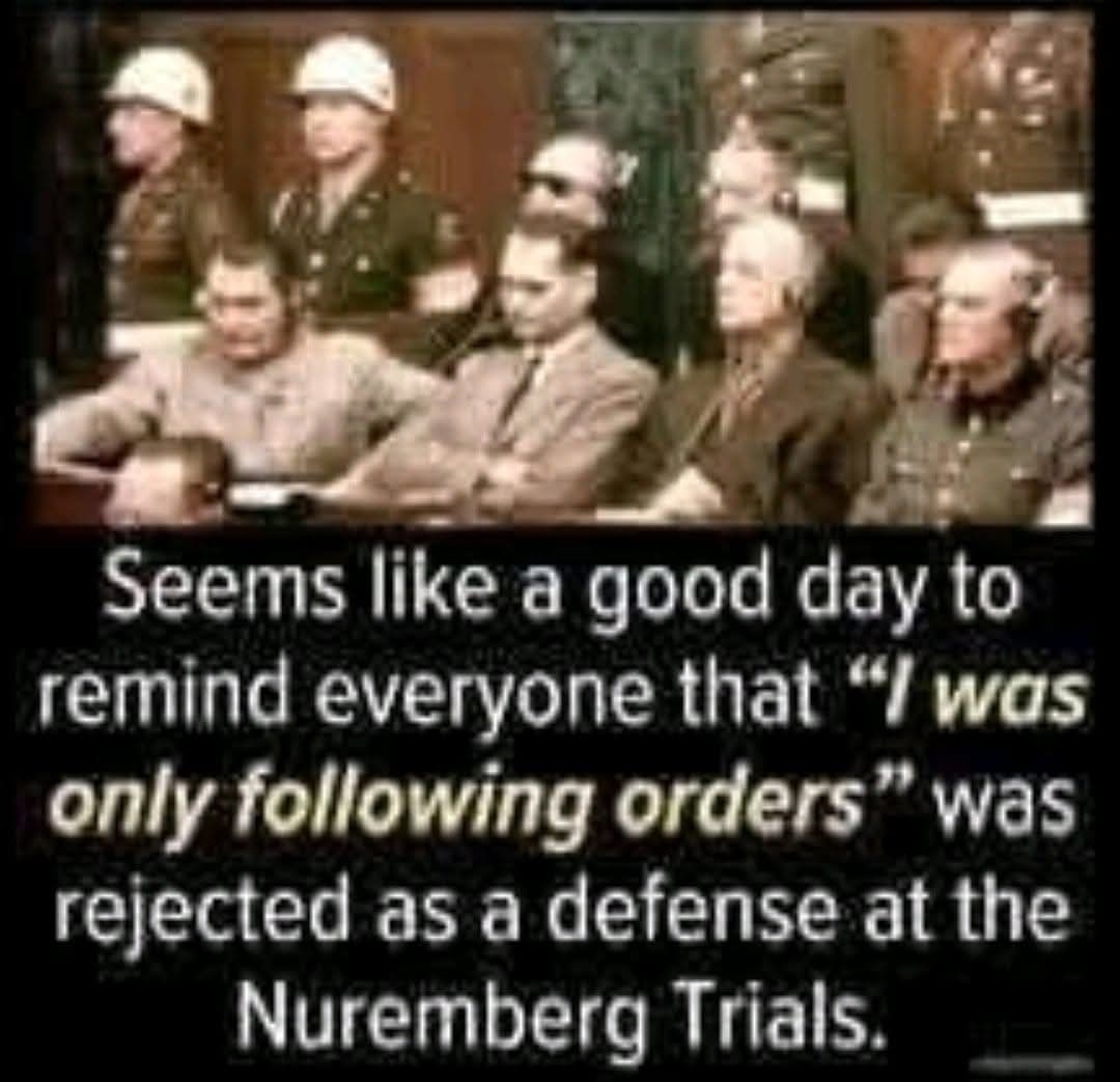 "I don't make the laws, I just enforce them" said every Nazi at Nuremberg