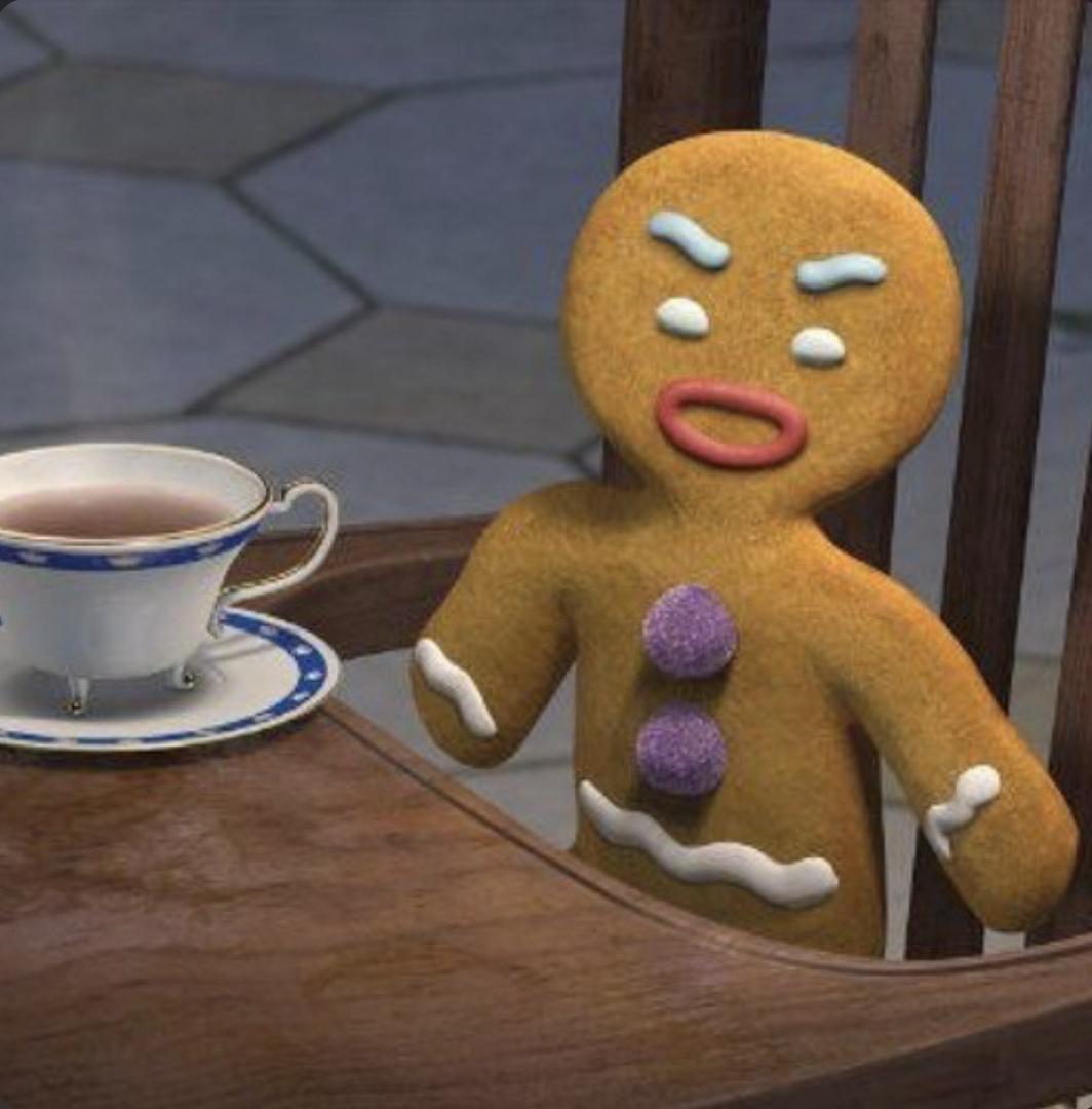 Sounding like the damn gingerbread man from Shrek😭😭😭 “WHAWTT”
