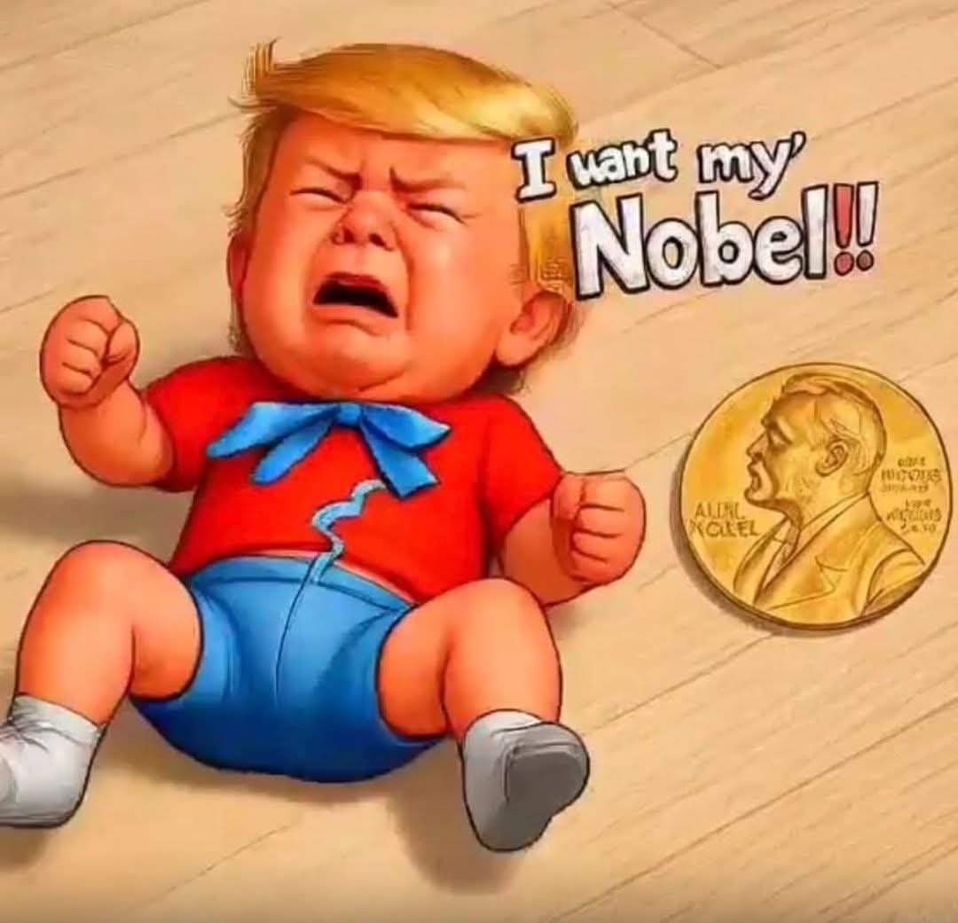 Trump= To hell with that No Kings protest, I deserved the Nobel Peace Prize. I'm just glad nobody has thought of the No Pedophile protest yet, only one who thought about it was the guy making this post