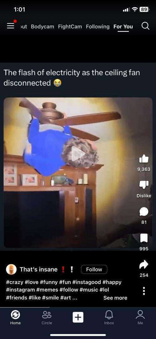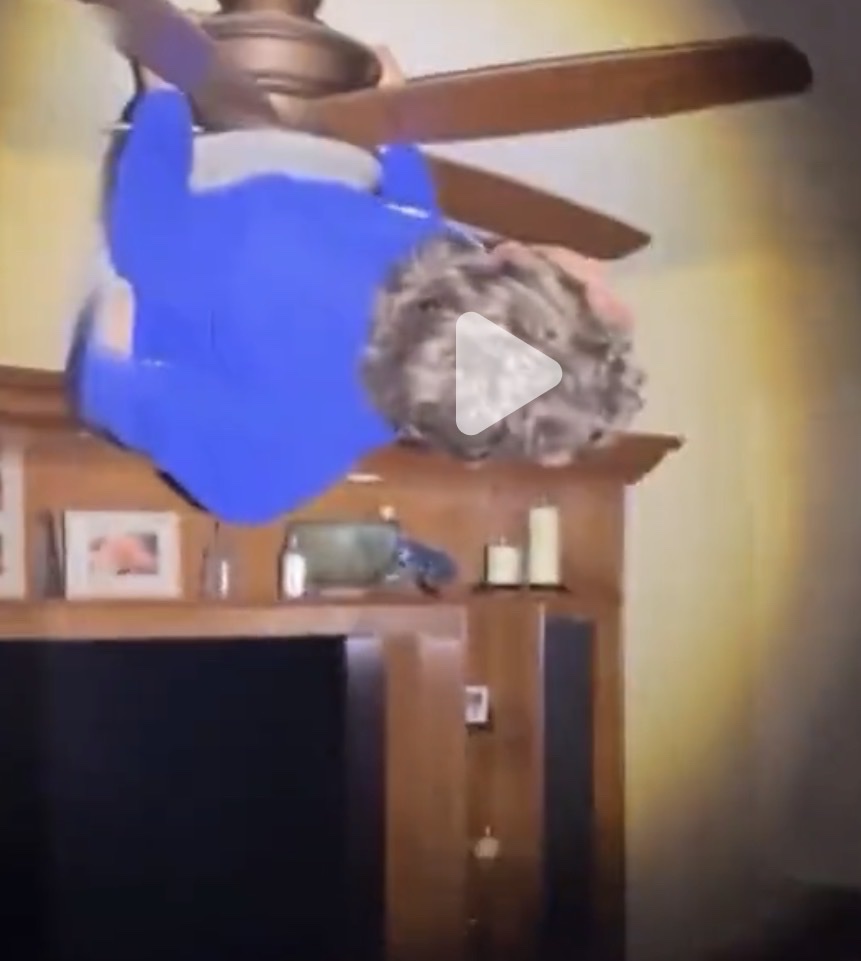 How the fuck did he get on the ceiling fan?😭😭😭😭