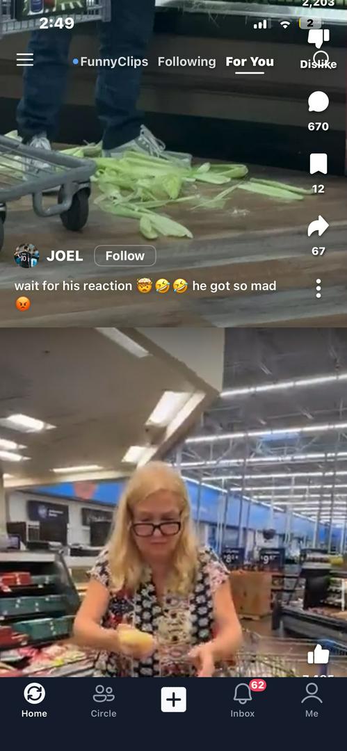 okay you never seen anybody shuck corn cuz she's wanting to see what it looks like inside before she buys it