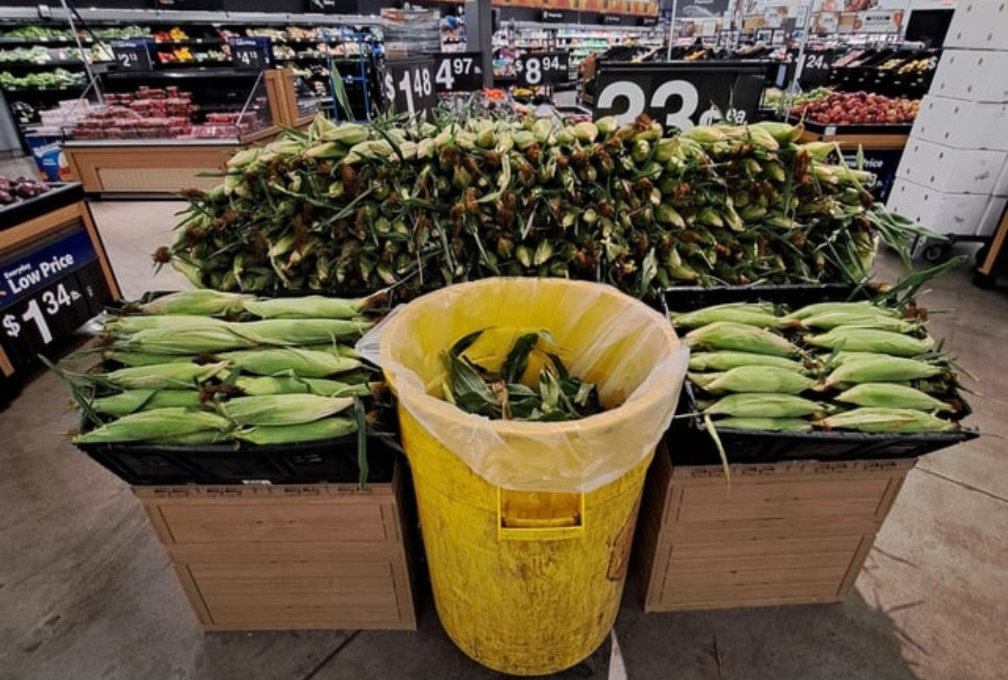 Well yes! Many grocery stores provide a trash can so you can shuck corn neatly. Thank you to all groceries that provide this service!